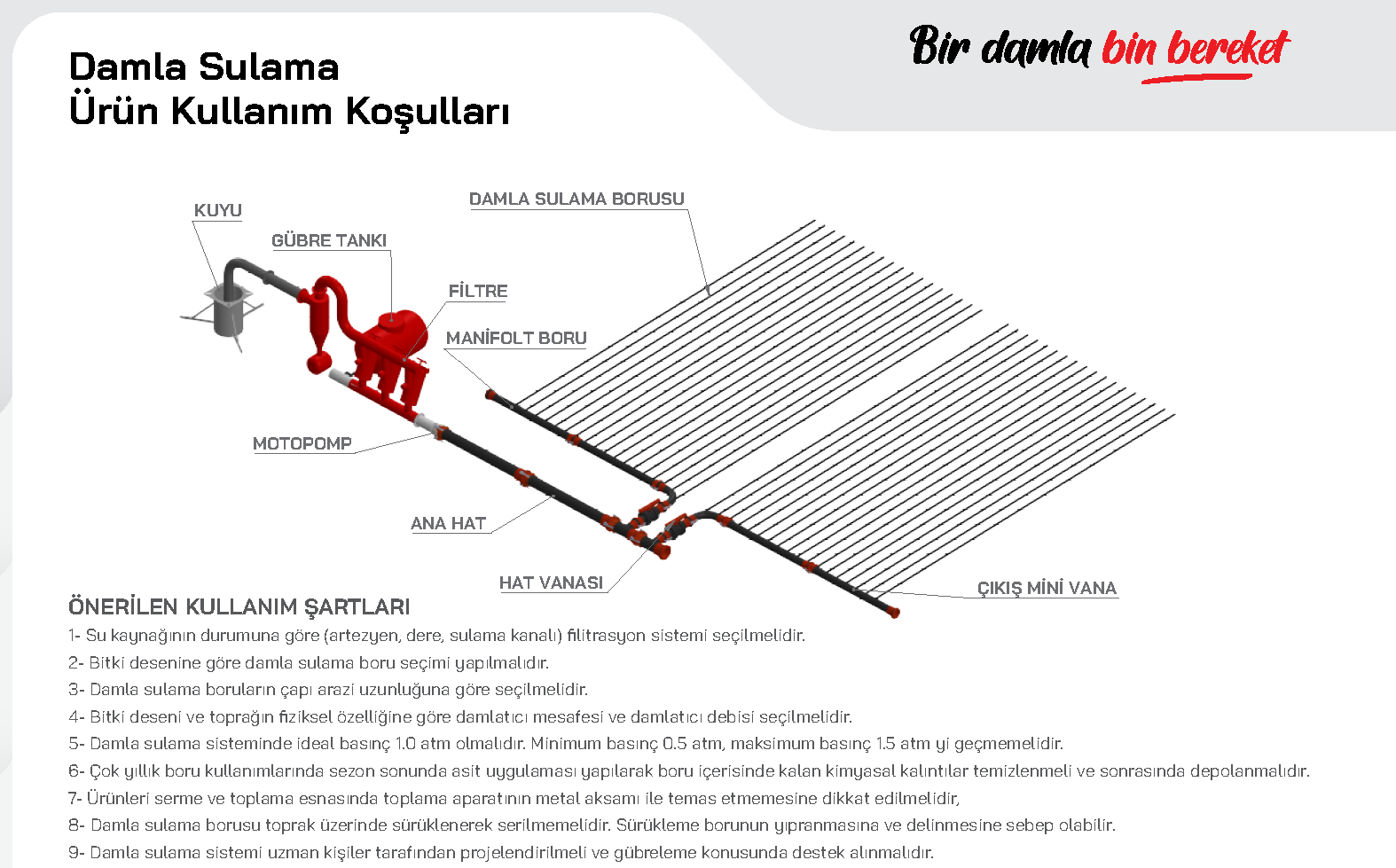 Damlama sulama boru ve ek parçaları ; tarımsal sulama, peyzaj, seralar, otomatik sulama alanlarında kullanılmaktadır.