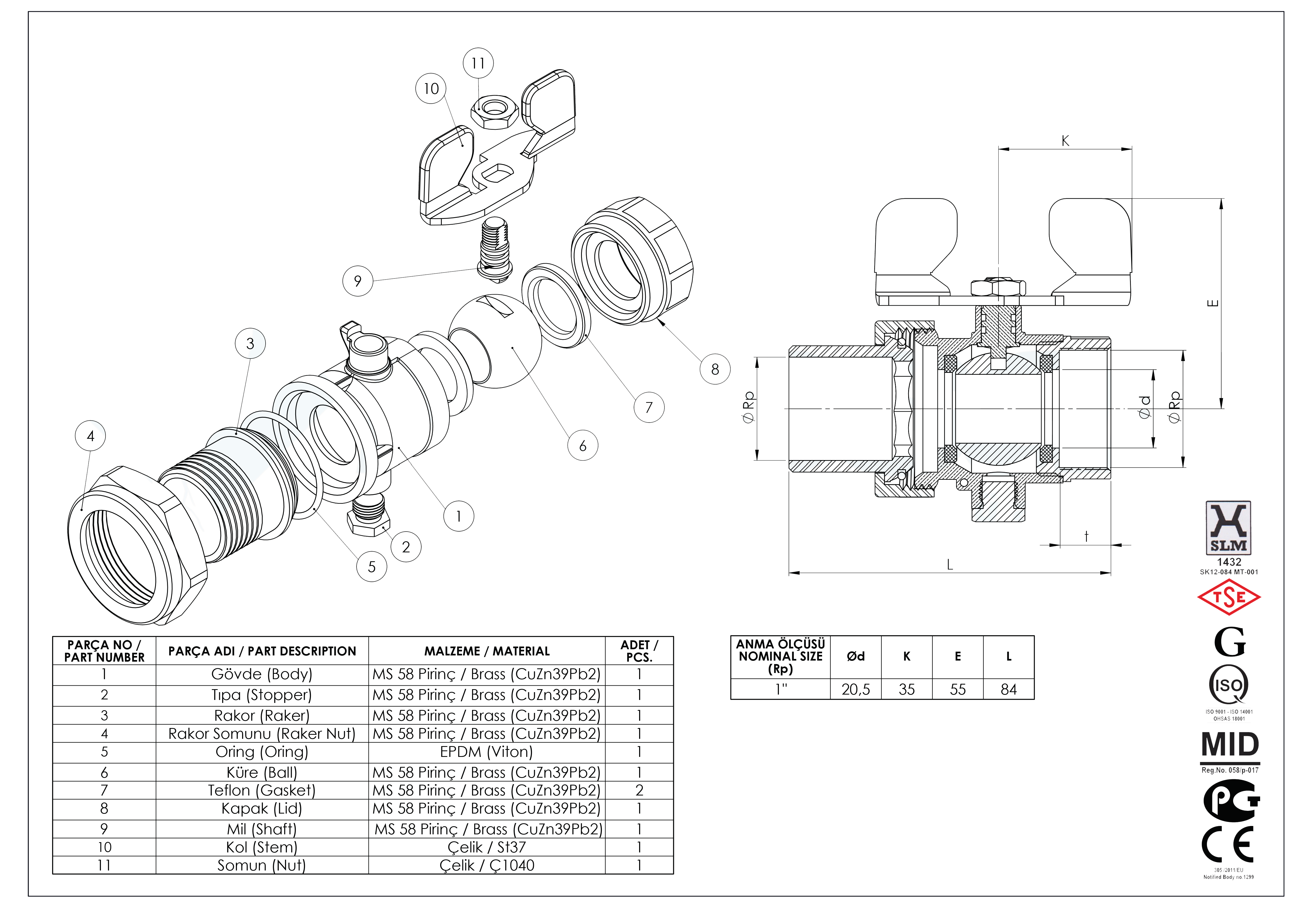 Maksimum güvenlik için PTFE conta ve EPDM O-ring.